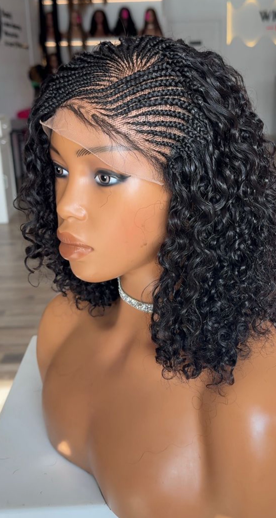 Elevate your everyday aesthetic with our 10-inch Side Cornrow Lace Front Human Hair Wig. This premium wig combines the precision of professional, neat side cornrows with the luxury of high-quality human hair, providing a versatile and sophisticated look that is perfect for any occasion.