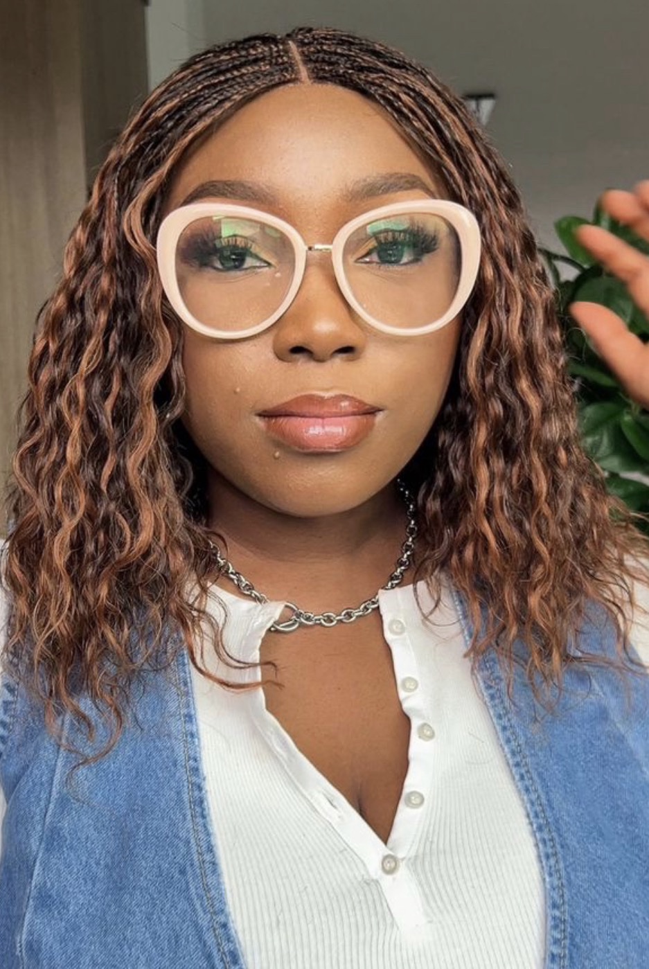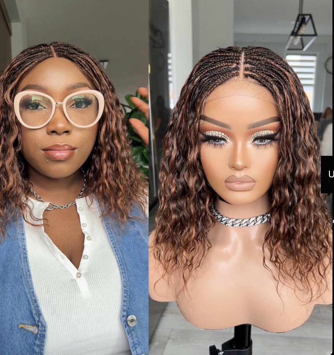 The crown features expertly crafted side-swept cornrows that transition into a beautiful, shoulder-length mane of silky, multi-tonal hair. The unique color mix adds depth and dimension, making it the perfect statement piece for any occasion.