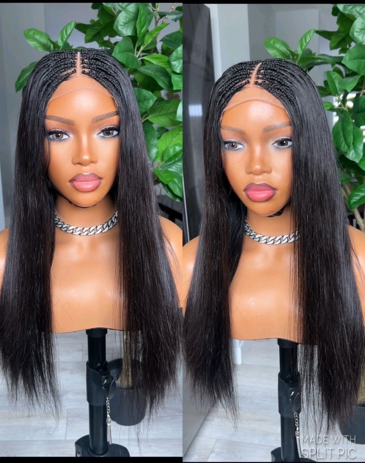 The standout feature is the intricate micro-braid detail at the crown. These tiny, hand-braided accents provide the “just stepped out of the salon” braided look without the hours of sitting in a chair. The braids melt into glass-finish silky straight hair that falls gracefully past the shoulders.