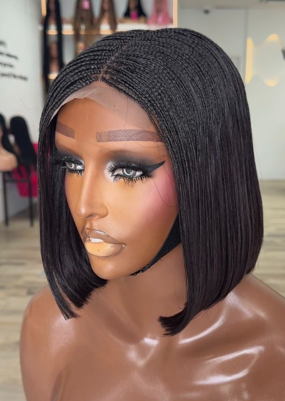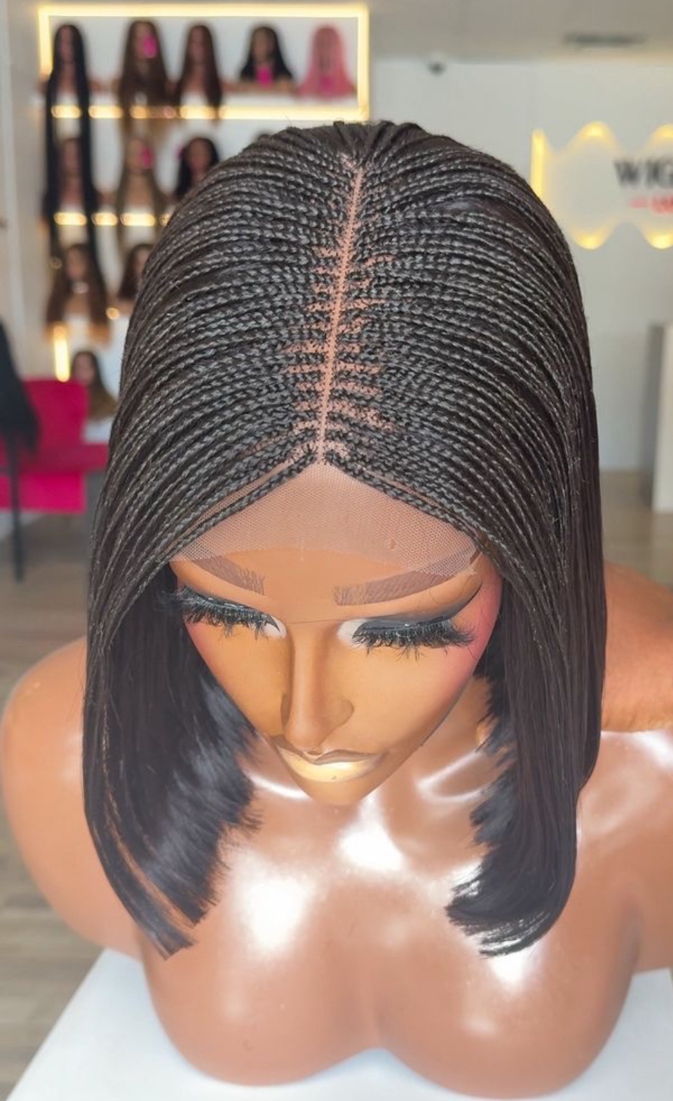 Long Description Experience the ultimate blend of luxury and convenience with the WIGSBYGAGA 8’’ SDD Human Hair Micros. Expertly crafted for the modern woman, this braided bob wig features high-quality Super Double Drawn human hair to ensure thickness from root to tip. The micro-braid technique provides a sophisticated, lightweight feel, while the high-definition lace frontal creates an undetectable, melted hairline illusion.