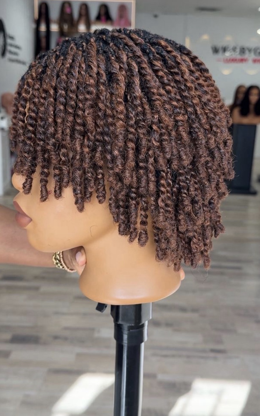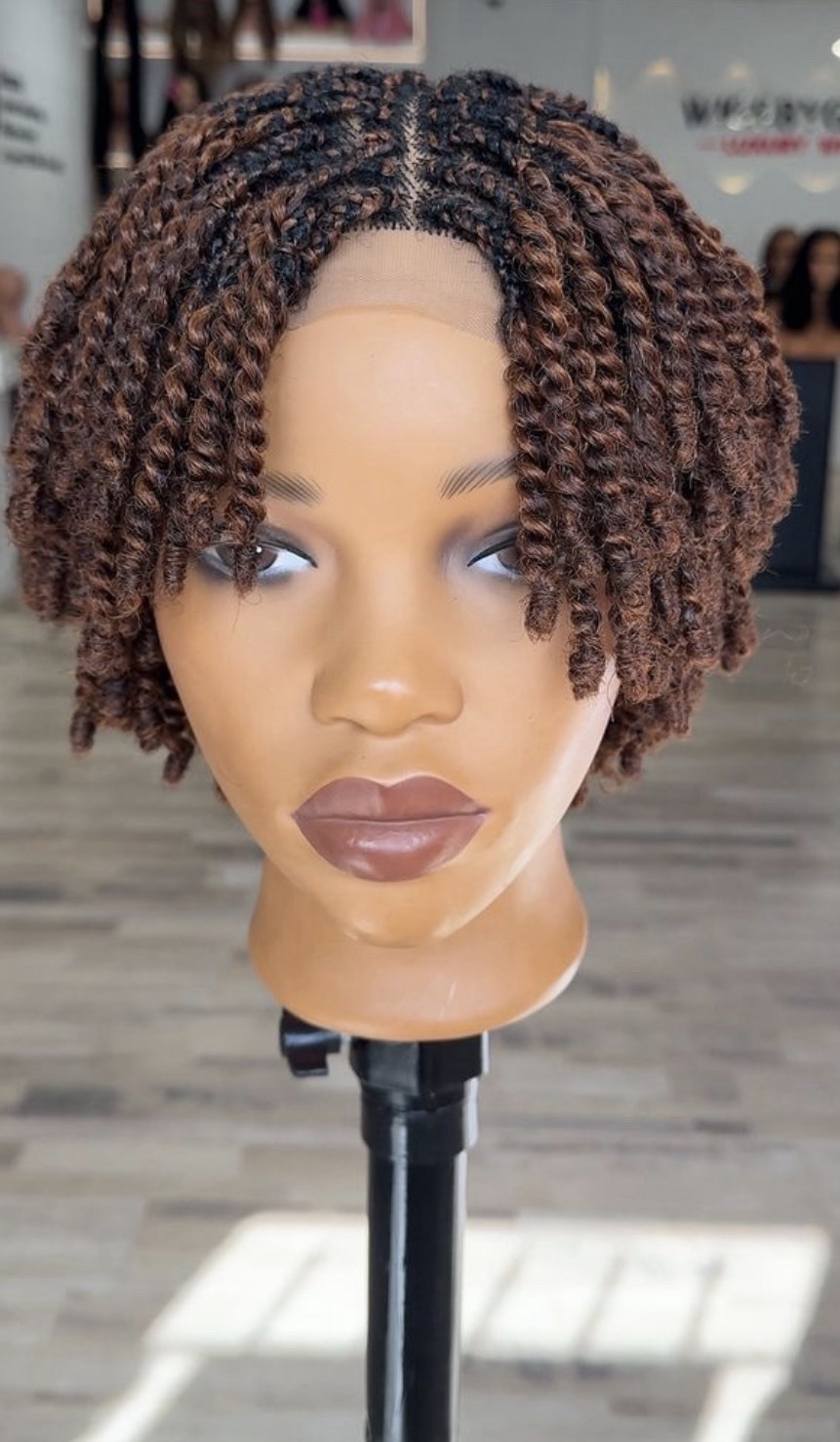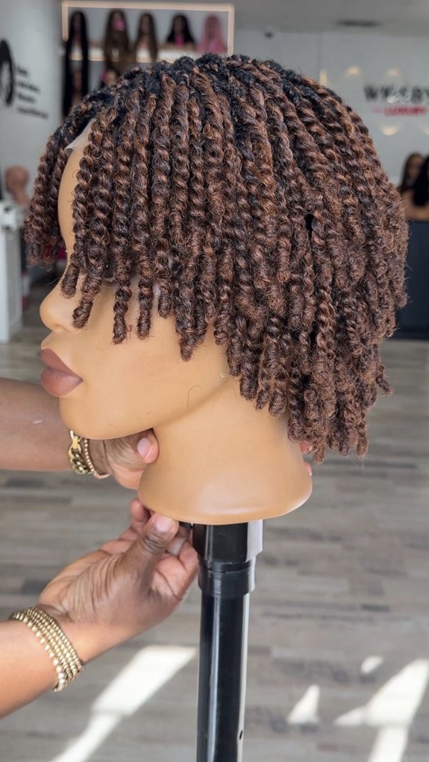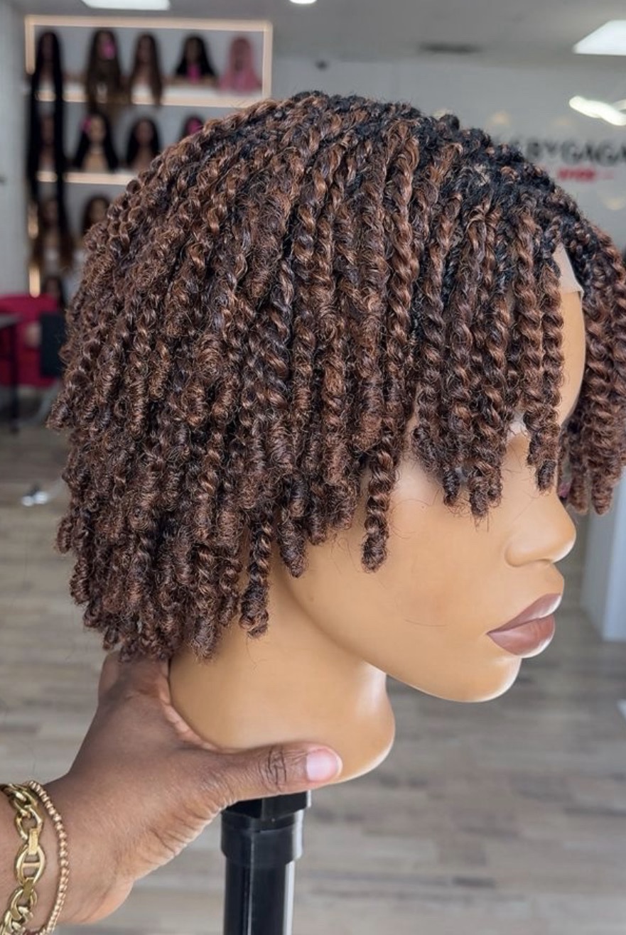 Experience the perfect blend of convenience and sophistication with our Afro Kinky Pixie Cut Braided Wig. Hand-crafted to mimic natural hair texture, this wig features tight, springy twists in a beautiful 33/30 (Dark Auburn and Copper Brown) mixed blend.