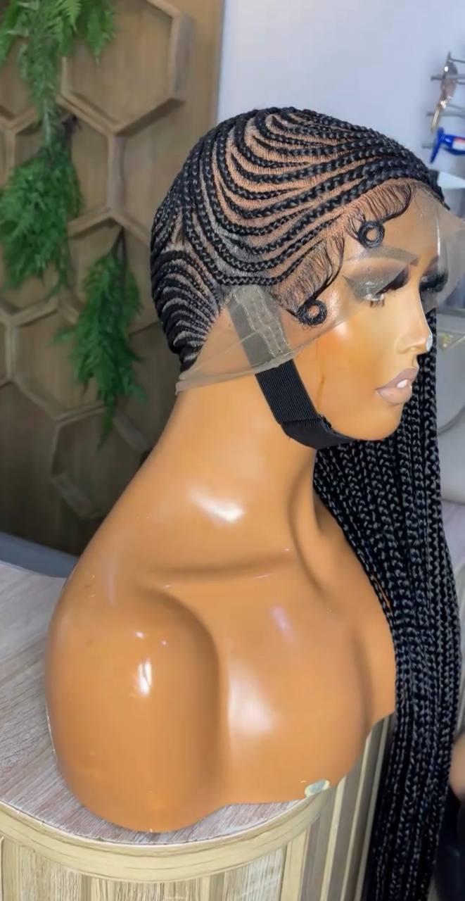 Each unit is hand-braided with meticulous attention to detail, ensuring the rows are neat, consistent, and lie completely flat. This wig is constructed on a breathable, glueless cap with a high-definition lace finish, allowing for a “melted” hairline that requires zero adhesive. It is the perfect low-tension protective style for those who want the intricate look of professional feed-in braids without the hours of sitting or the stress on their natural roots.