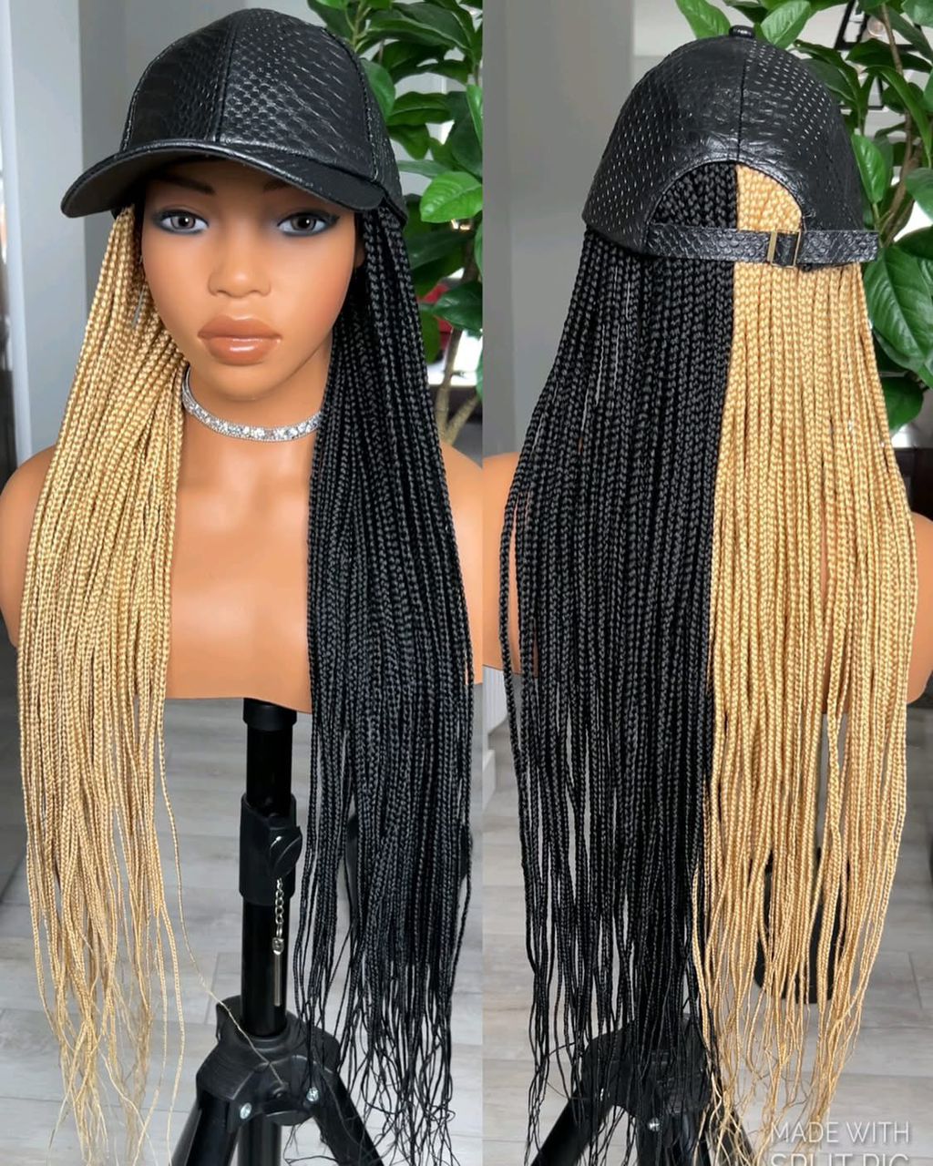 Stand out from the crowd with the Blonde and Black Two-Tone wig. This cap wig features a professional color block contrast from deep black to vibrant blonde. It’s a high-fashion choice for those who love color but want to maintain a polished, braided look. The cap construction ensures a snug fit.