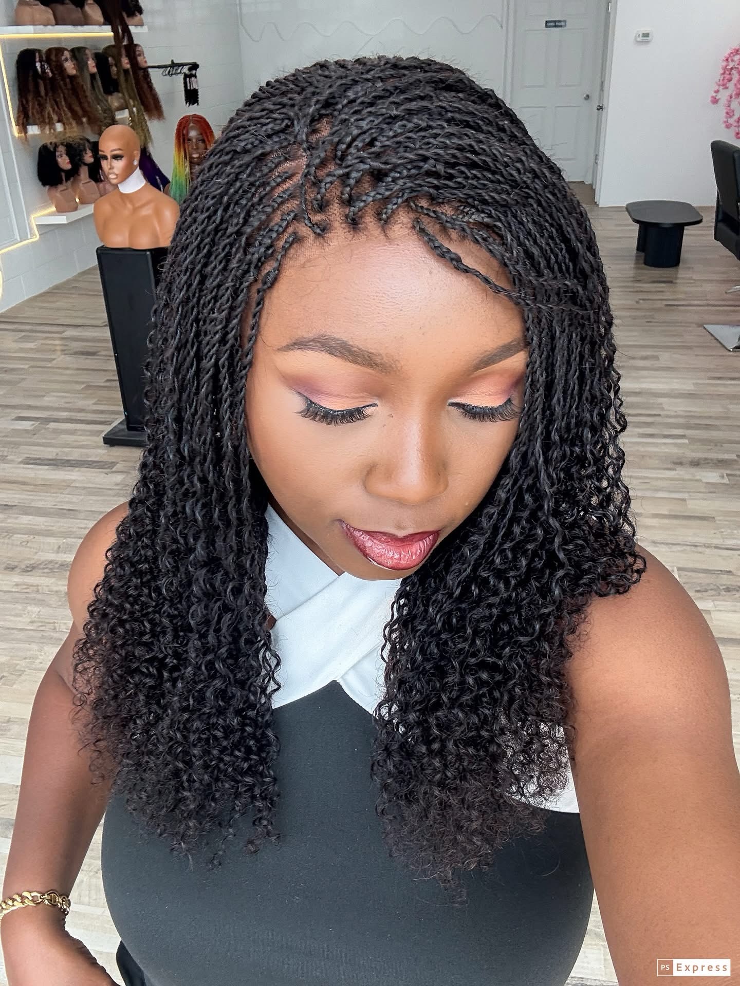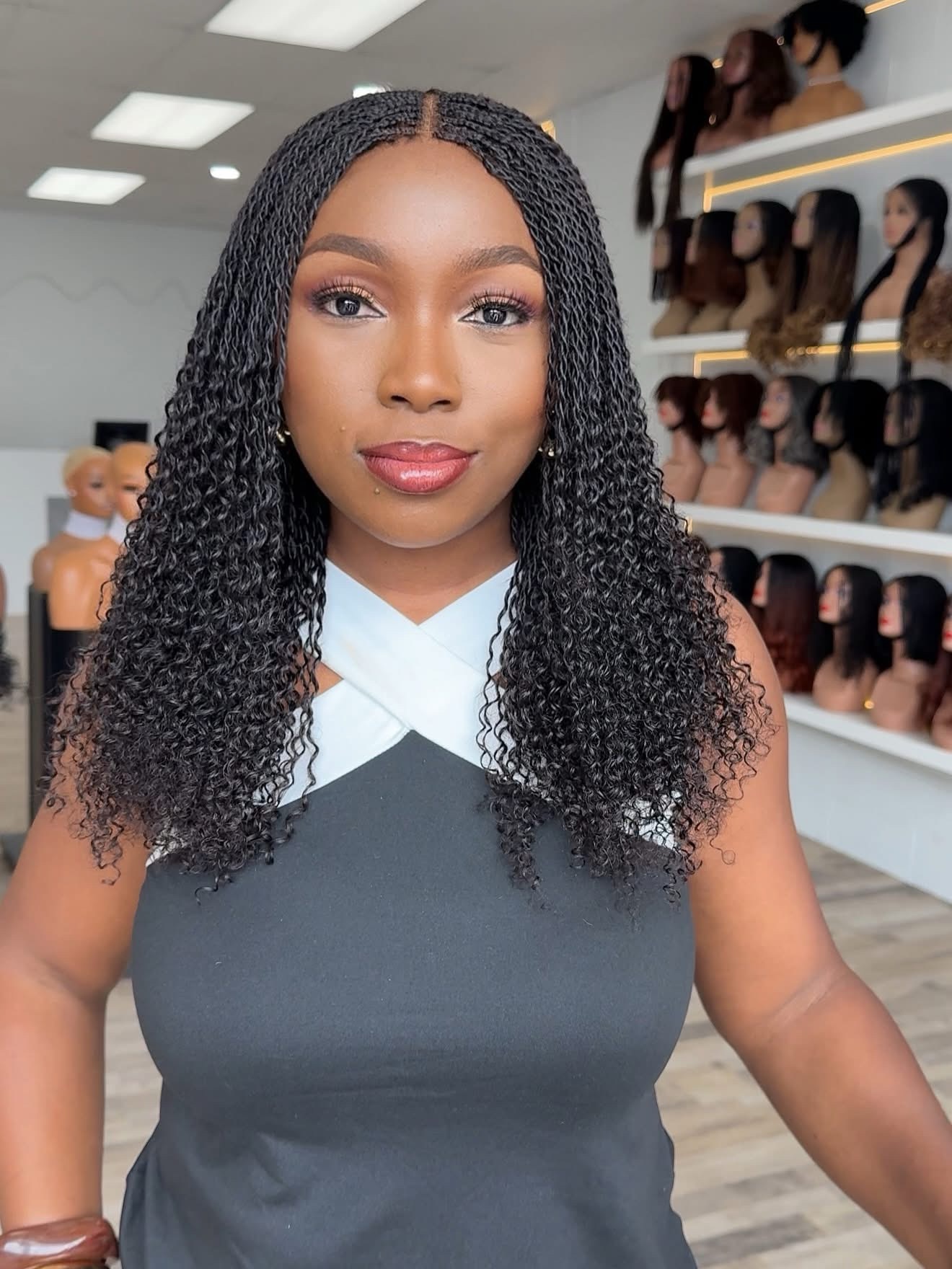 Enhance your everyday glam with this stunning Bohemian Twist Braids Lace Front Wig, designed for women who love the perfect blend of structure and texture. This braided wig features neatly installed small twists at the roots that transition beautifully into soft, bouncy curly ends for a full, voluminous finish.