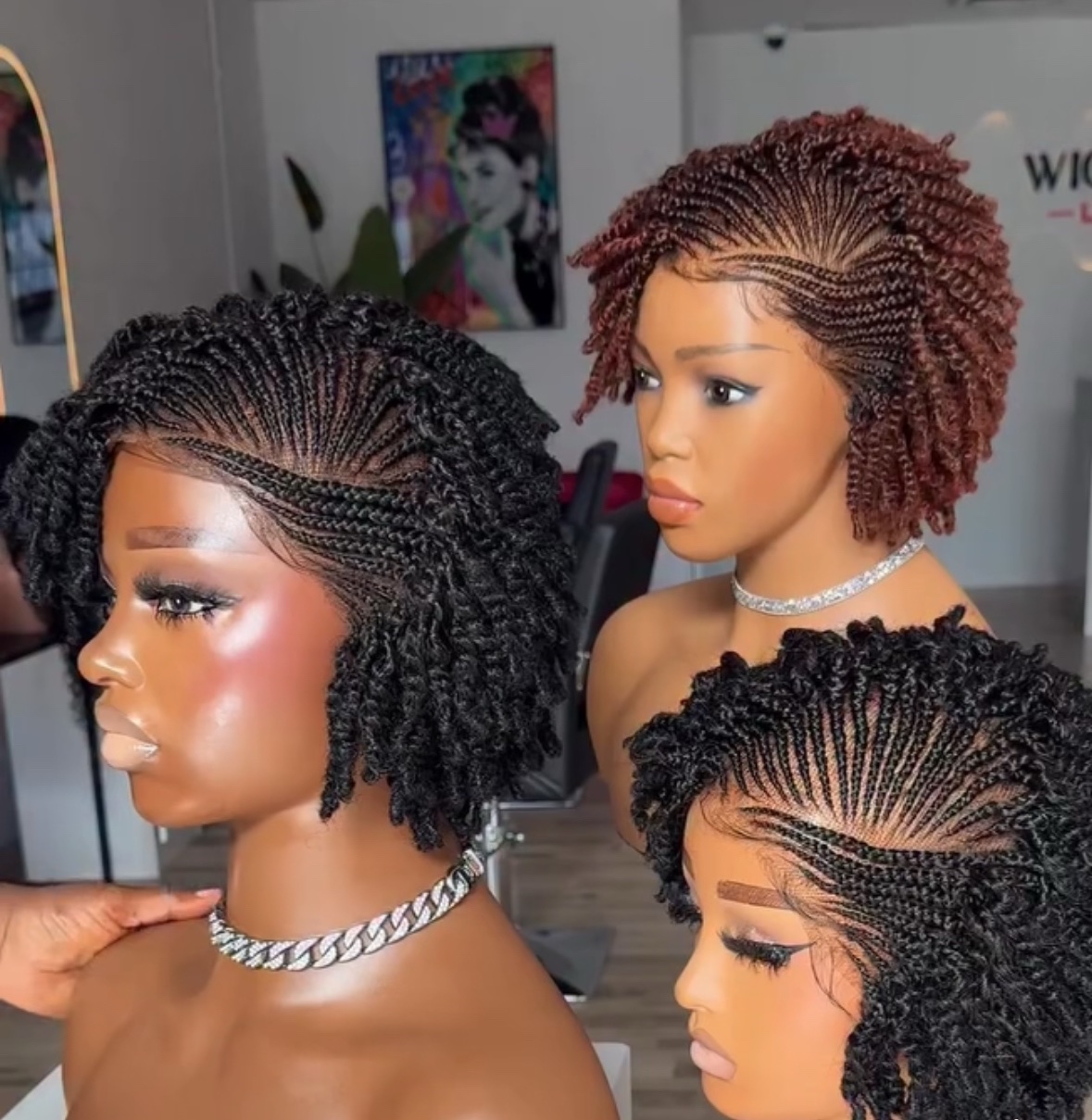 Upgrade your protective styling game with the Glueless Hand-Braided Kinky Twist Wig from Prechy Hairs. Expertly crafted by skilled artisans, each twist is hand-braided to ensure a uniform yet natural appearance that mimics 4C hair texture perfectly. The short bob style frames the face beautifully, offering a sophisticated silhouette that is both lightweight and breathable.