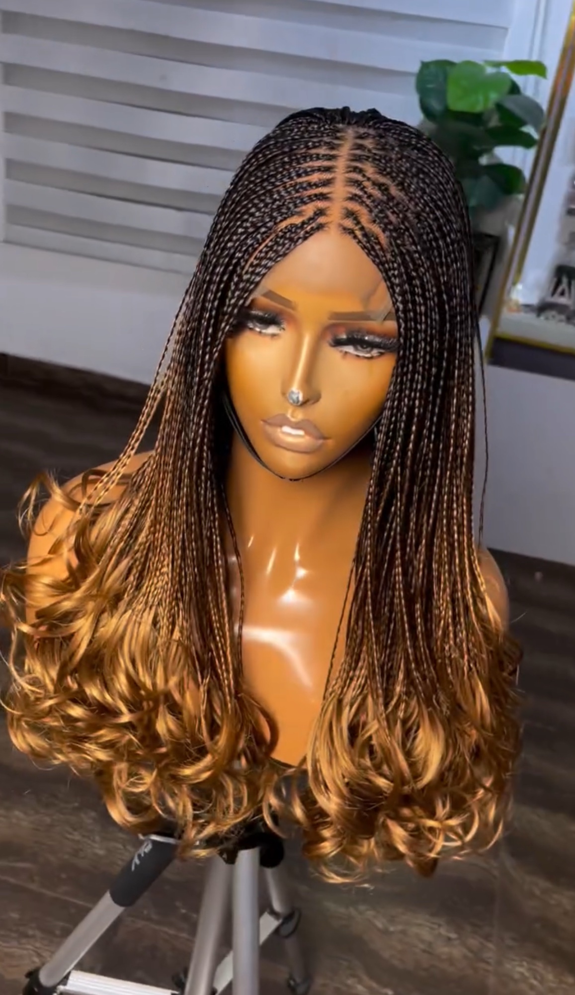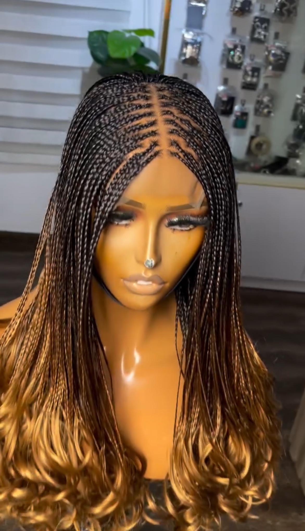 Switch up your style with the ultimate protective unit: our Ombré Honey Blonde Micro-Braided Wig. This handcrafted masterpiece combines the precision of tiny braids with the glamour of soft, bouncy curls, saving you hours of braiding time while delivering a high-fashion aesthetic.