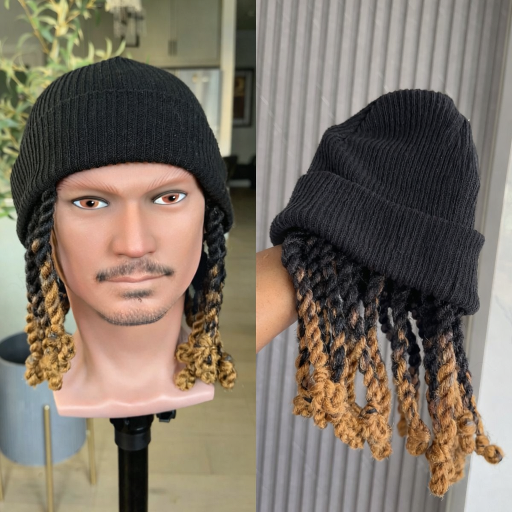 Upgrade your style effortlessly with our Men’s Cap Wog, a premium beanie wig designed for modern men who love bold, fashionable looks. This unique cap wig combines a classic black knit beanie with neatly attached two-tone black and blonde twists, giving you an instant braided hairstyle without spending hours at the salon.
